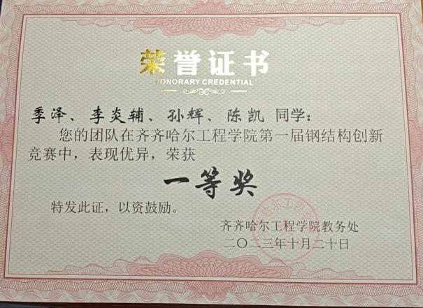 李炎辅,男,共青团员,建筑工程系土木工程专升本2024届毕业生,2022年9月入学,曾荣获:2022年曾获全国数字建筑创新应用大赛团体三等奖;2023年齐齐哈尔工程学院2022年度三好学生;2023年2022-2023学年度第一学期二等奖学金2023年;齐齐哈尔工程学院2023年先进成图创新设计竞赛优秀奖;2023年第十四届黑龙江省龙江杯大学生先进成图建模大赛个人三等奖;2023年齐齐哈尔工程学院第一届钢结构创新竞赛一等奖;2023年中国钢结构协会高等学校钢结构竞赛三等奖;2023年荣获黑龙江省三好学生;2023年国家励志奖学金;2023年2022-2023学年度第二学期一等奖学金;2023年全国数字建筑创新应用大赛三等奖;2023年2023-2024学年第一学期优秀实践学生团队;2023年2023-2024学年最受企业欢迎奖;2024年2023-2024学年度第一学期二等奖学金;2024年荣获黑龙江省优秀毕业生