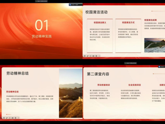 会上,宋老师强调专业实践学期的专业生产劳动是技能成长的“磨刀石”,学生在企业生产线实操中,将课本知识转化为岗位能力,实现从理论到实践的跨越,是发扬劳动精神的契机,更是培养工匠精神的重要过程。在劳动分享环节,风景221班贾政旭说,志愿服务劳动如温暖纽带,社区助老、环保宣传等活动,让劳动在奉献中绽放社会价值,而校园日常生活劳动看似平常,却能在宿舍整理、校园清洁中培育责任担当,是养成良好习惯的基础。智能建造242班马钰涵说,劳动精神是人民永远推崇的,它彰显着中国人民的民族底色,不畏困难,迎难而上,劳动人民最光荣。