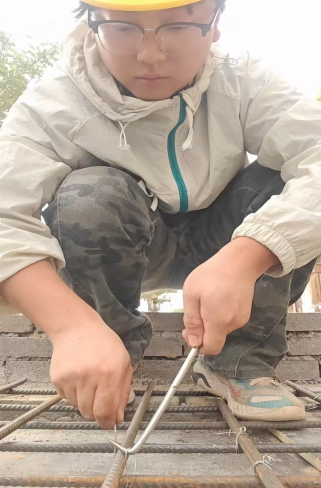 土木221魏鑫鑫参与排水防涝建设项目中的砌管涵墙,这段时间的实习任务主要是定位放线和辅助师傅砌筑。定位放线就是在基础上重新进行墙体的定位放线,弹出墙体的边线和轴线,确保墙体位置准确。扎丝绑扎要牢固,打结时尽量拧2-3圈,防止松动,尤其在受力部位,避免后期出现钢筋位移。控制好钢筋间距,可用粉笔在模板或已绑扎的钢筋上做好标记,保证间距均匀,符合设计规范。注意钢筋保护层厚度,通过放置垫块来确保,垫块要分布均匀,避免因保护层不足影响结构质量。