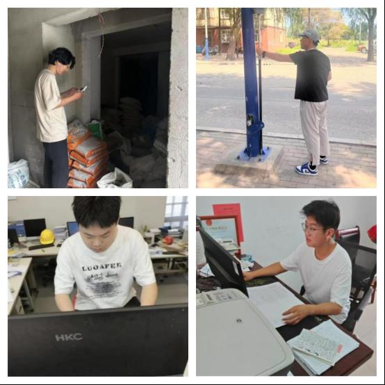 工管22级张淇小组:张淇操作仪器监测边坡与基坑,用MATLAB建模分析;赵明慧、李佳嵘在建筑公司任资料员,负责资料整理、报审等;王浩丞负责道路基层施工测量监控,参与压实度检测辅助工作。团队成员提升了专业技能与素养,积累实践经验。