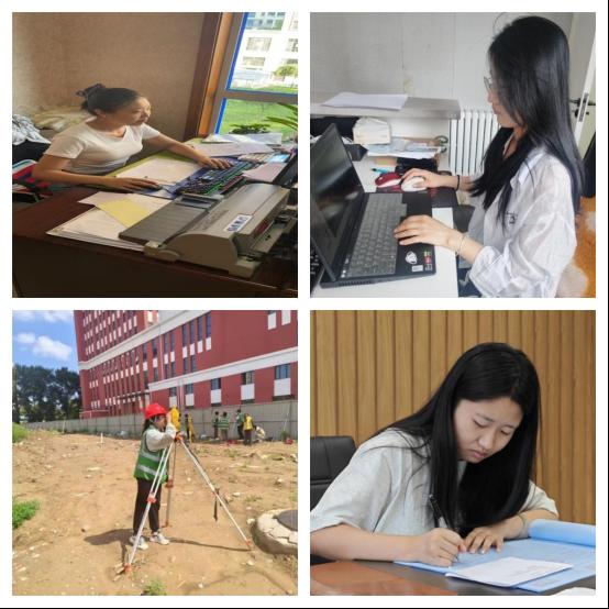 工管22级李思佳小组:李思佳在运输公司任材料员,掌握材料管理知识与质量判断;司嘉仪在建工集团任资料员,负责资料全流程管理;陈鹤月在装饰公司任预算员,完成预算及投标、竣工文件处理;季禹含进行井盖及三站高程差测量。