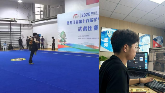 邱胜杭同学在此期间参加了黑龙江省第十九届学生运动会取得优异成绩,邱胜杭始终保持着对武术运动的热爱与坚持。实习期间,他在完成各项专业实习任务的同时,利用休息时间刻苦训练,兼顾实习工作与备赛需求。