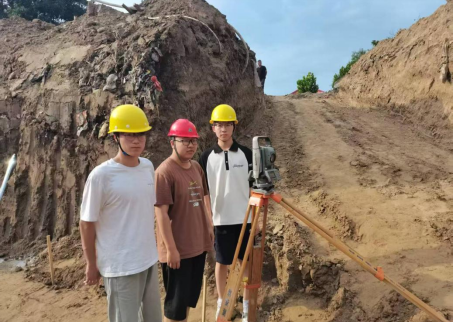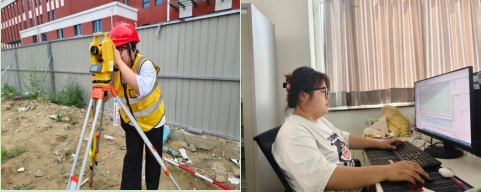 郭昊宇和薛筱晰同学在河北省钰锦市政有限责任公司进行测量实践,郭昊宇同学在施工中对工程结构的位移、沉降、变形等进行实时测量),及时发现异常并反馈,保障施工安全,防止结构失稳。