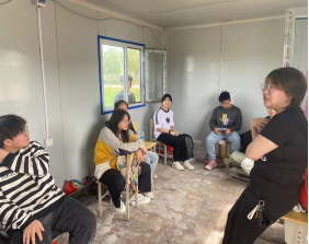 在现场负责人的陪同下,刘老师和国老师与现场黄士春老师及实习学生对学生在现场的生活、工作状态及工作环境进行了深入的交流,整体详细的了解了学生在施工现场的实习情况,黄士春老师也对学生专业实践任务及完成情况与刘老师和国老师进行了交流,也肯定了学生在实习过程中的努力。