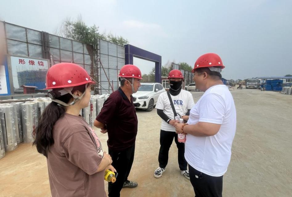 教师们顶着炎炎烈日通过亲身巡查、观察和交流,全面评估了学生们在项目策划、执行监控以及团队协作等方面的实际表现,及时给予了针对性的反馈与指导,在实地检查过程中,教师们对学生的每一项操作都进行了细致的观察,包括图纸的精准阅读、测量放线的准确实施、进场材料的学习检查等以及现场管理的有效执行。同时也关切的慰问了学生的身体、安全情况。教师们在确保学生安全的前提下,特别关注了他们的防暑降温措施,确保每位学生都能在健康、安全的环境中学习与成长。