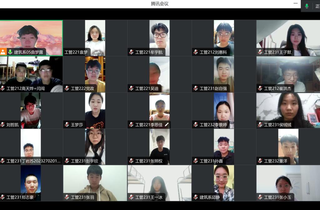 为了发现专业实践学期实习困难和检查学生实习完成情况,加强师生之间的沟通能力,工程管理专业于7月19日召开线上总结会,会议由曲梦露老师主持,工程管理2021级、2022级和2023级共31人参与。
