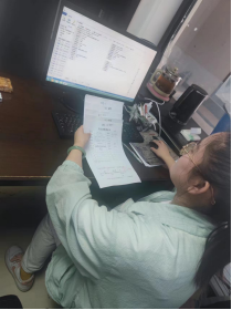 工管222班周罗干同学本周工作同指导老师进行钢筋拉伸实验,对送检的钢筋进行检测。工管231班田超越同学工作同指导老师进行写检测报告,她本周独自登记混凝土试块、砂浆试块、钢筋和水泥的委托单。