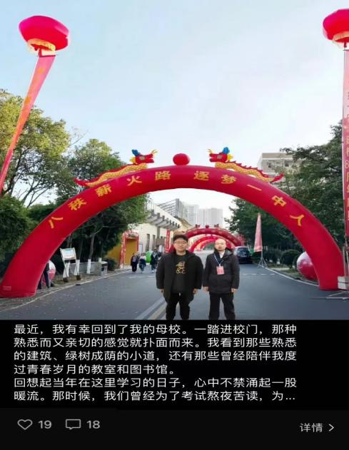 工管222班 王锐同:在毕业数年后,我再次回访母校。当我踏入那熟悉的校园,往昔的点点滴滴如电影般在脑海中回放,一切都还历历在目。刚进入校园,那种熟悉的感觉便涌上心头,仿佛自己又回到了学生时代。见到母校的老师和领导,心中更是充满了亲切之感。我向他们讲述了自己目前的学习与生活情况,在交流中,我感受到了母校的温暖与关怀。回想起曾经在母校的日子,那些奋斗的时光、与同学们的欢声笑语,都成为我心中永恒的记忆。