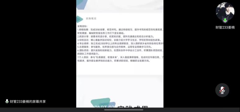 为更好的了解实践学习学生社会实践情况,督促学生更好完成实践学期学习任务。生涯导师许佳宁于1月24日通过腾讯会议与学生开展实践工作会议。会议主要分为三个部分,一是社会实践学期第三周汇报,二是期末成绩及下学期学习计划,三是春节期间的安全教育。