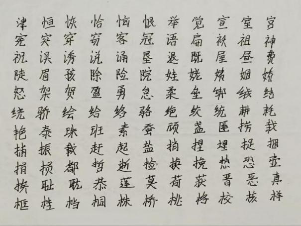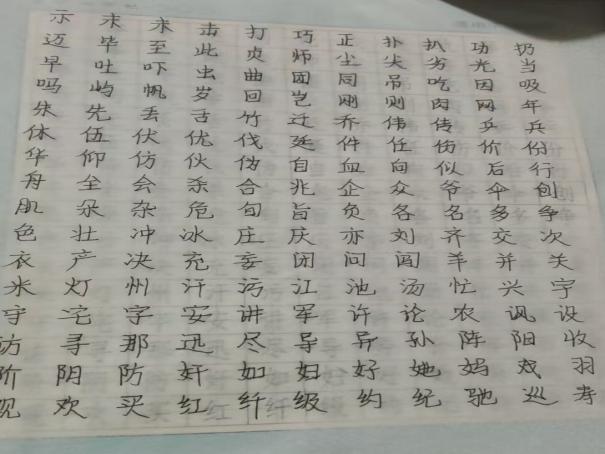 在本周的钢楷练习过程中,土木221班的潘双同学遇到了一些困难。比如,在书写一些复杂的汉字时,容易出现结构松散、笔画比例失调的问题。为了解决这些问题,她采取了放慢书写速度的方法,仔细观察每一个字的结构,分析各部分之间的比例关系,并在心中默默构思后再下笔。这种方法虽然耗时较长,但却有效地提高了她的书写质量。