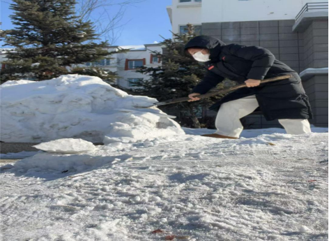 JG-244小组成员崔雅菊同学,在社区参加志愿服务“铲雪除冰在行动,志愿服务暖人心”工作中,积极响应号召,主动请缨,踊跃参与并出色完成了扫雪除冰的清雪活动,为社区居民的出行带来了便利。在志愿工作中她始终秉持认真细致、一丝不苟的工作态度,尽己所能,贡献力量,用实际行动清扫出一条条干净整洁的路。