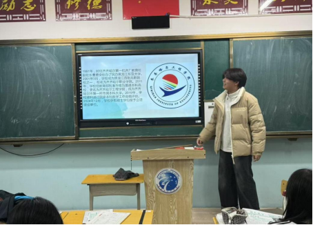 1月20日,JG-323小组成员李宜非怀着眷恋与热忱回访绵竹中学。站在讲台上,望着朝气的学弟学妹,他忆起往昔。随后着重介绍齐齐哈尔工程学院,分享“做中学、学中做”的学习模式,讲述自己在实践基地将理论用于实际的成长经历,还展示社团活动照片,分享趣事。此次回访,既是宣传,更是感恩母校的培育。