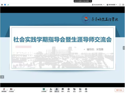 2025年2月14日,宋雪微老师开展社会实践学期指导会暨生涯导师交流会。本次指导交流会旨在通过各个团队对优秀典型做法和成果进行汇报分享,进而提升同学们的社会实践能力,更好的完成社会实践学期各项任务。