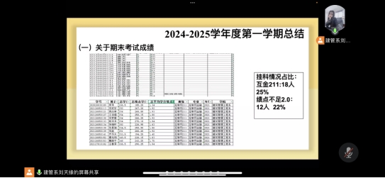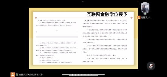 会上,刘天缘对上一学期学生的学习表现进行了总结,对学生的成绩、学术活动参与情况等方面进行了全面回顾。随后,辅导员详细说明了新学期的开学时间和返校要求,包括报到时间、仪容仪表等,确保每位学生都能安全、顺利地返回校园。针对互联网金融学位授予的要求,刘天缘进行了详细介绍,包括学分要求、毕业论文撰写规范、学术道德等方面。她强调,学位授予不仅是对学生学术成果的认可,更是对其综合素质的考验,希望每位学生都能认真对待,努力提升自己的学术水平和综合素质。