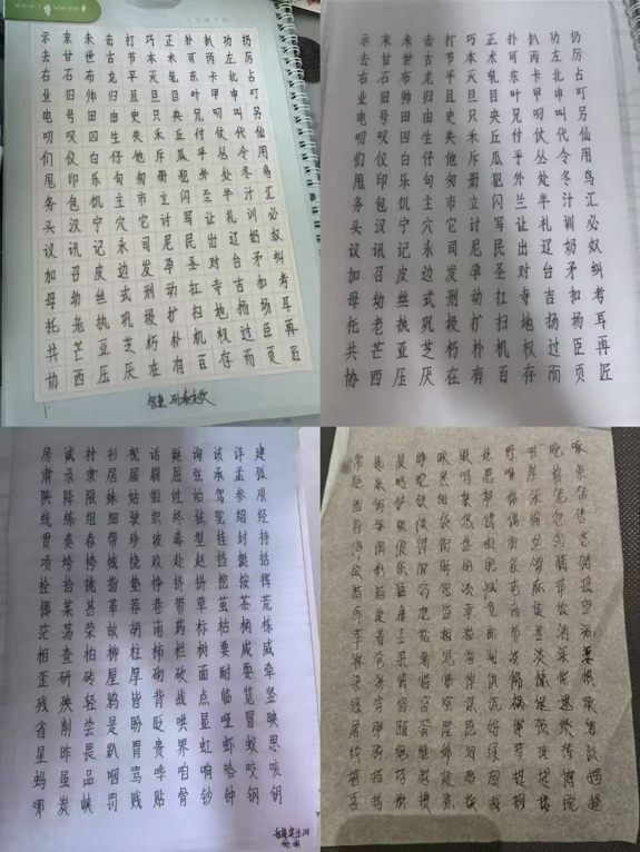 在钢楷临摹活动中,JG-284小组同学们积极参与、认真准备,以饱满的激情挥毫泼墨,舞动丹青,点染精彩。展板上,钢笔书法作品笔走龙蛇,力透纸背,表现出独特的自信和风骨;粉笔书法作品刚健清新,遒劲有力,显示出创意的风格和气势;毛笔书法作品笔画流畅,气韵生动,展现出深厚的底蕴与修养。不少师生驻足欣赏,从工整、美观的三笔字中感受艺术的熏陶,领略书法的魅力,充分展示了书香校园深厚的文化底蕴和学生丰富多彩的精神文化生活。丰富了大学生的校园文化生活,也有助于激发对书法艺术的热爱,增强对传统文化的认同感与自豪感。