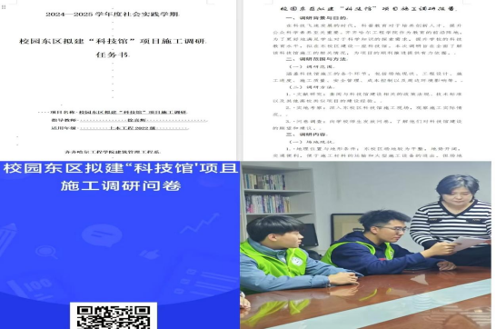 社会实践学第七周,截止2月21日,本小组对校园东区拟建“科技馆”项目施工展开全面调研,在这个过程中,每个人都收获了宝贵的知识和经验,提升了沟通能力、解决问题的能力。