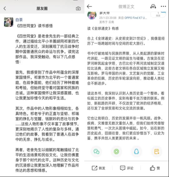 JG-063小组玉罕章、周渝林在1月15-24日分别进行读书分享。《四世同堂》展现了在抗日战争背景下,北平小羊圈胡同内祁家四世同堂的生活变迁。这部作品让玉罕章深刻体会到战争对普通人生活的巨大冲击,以及人们在逆境中所展现出的不同人性面貌。