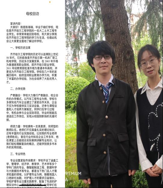 陈海瑞在回访母校期间和学弟学妹们热情的交流。看见学弟学妹们朝气蓬勃的脸庞,好像重回了当时的课堂,他在与老师进行交流的同时,也和学弟学妹们不断地分享他的学习和生活经验,希望能为他们提供一些启示和帮助。
