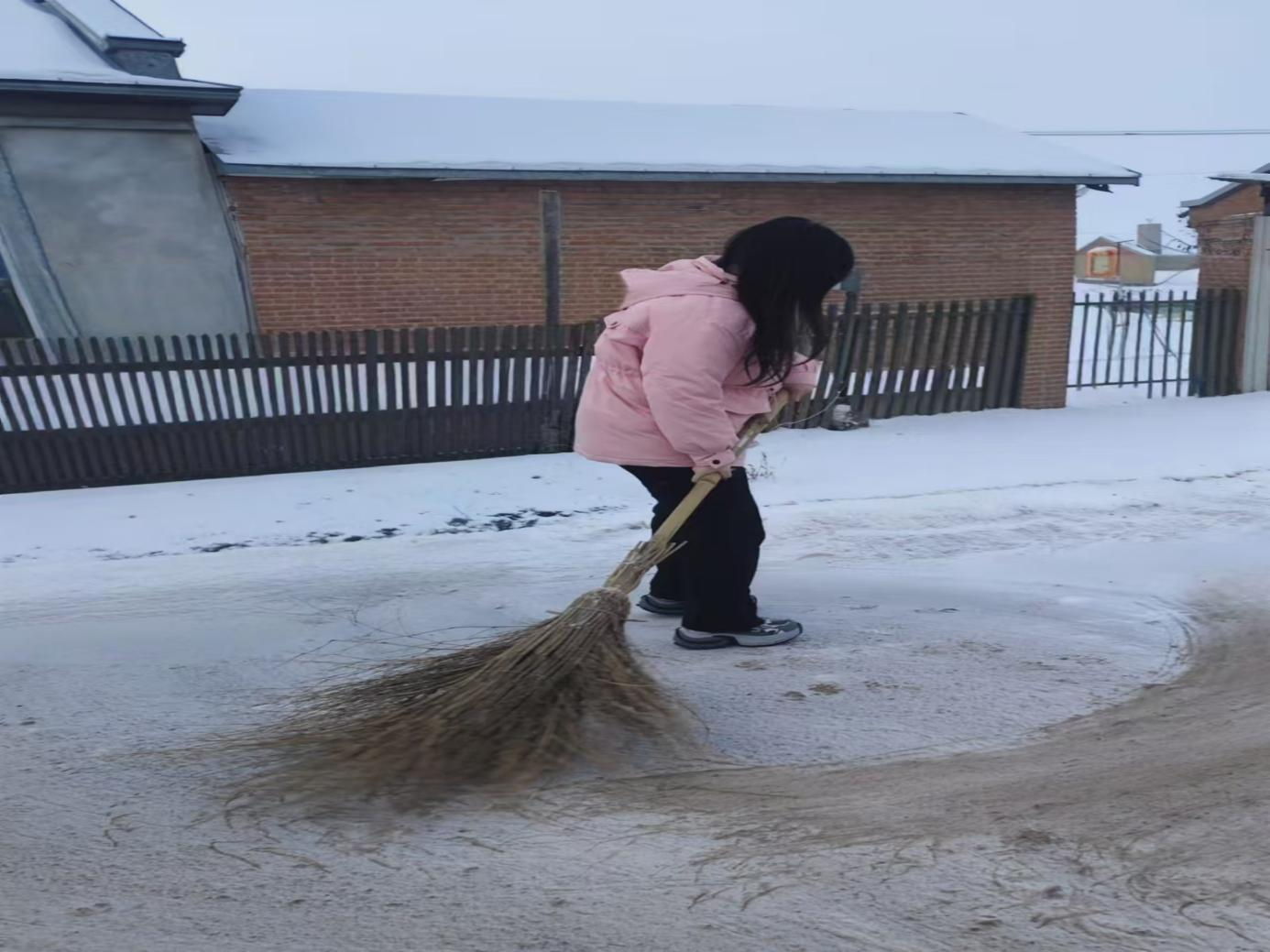 为响应学校号召,JG-297小组成员王法悦同学于2月8日在巴彦县永发乡进行扫雪志愿服务。
