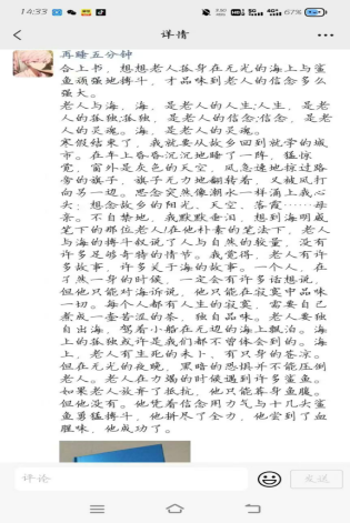 伊柄宇表示:读完《老人与海》,我被深深震撼。桑地亚哥老人独自出海,与大马林鱼、鲨鱼殊死搏斗,尽管最后只带回鱼骨,却从未言败。他让我懂得,生活中困境重重,但只要像老人一样,有永不屈服的精神,就算面对失败,也依旧是强者,值得被敬重。