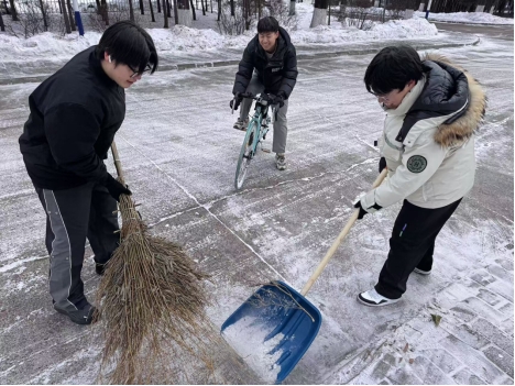 土木224班的刘海帅同学表示,扫雪不仅是体力的考验,更是意志的磨炼。手冻僵了,就搓一搓继续;腰酸背痛了,稍作休息又投入。当看到原本积雪覆盖的道路逐渐变得通畅,一种成就感油然而生。这不仅方便了他人出行,也让我意识到,生活中的困难就像这积雪,看似棘手,但只要齐心协力、坚持不懈,就一定能克服。