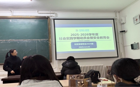 为帮助学生们更好地在社会实践学期规划时间、明确实践项目,12月23日,财务管理专业2025级在3号教学区1101教室召开了“2025-2026学年度社会实践学期动员会暨安全教育”主题班会。本次班会由辅导员刘娜和专业长赵靖宇共同主持,财务管理专业2025级全体学生参加。