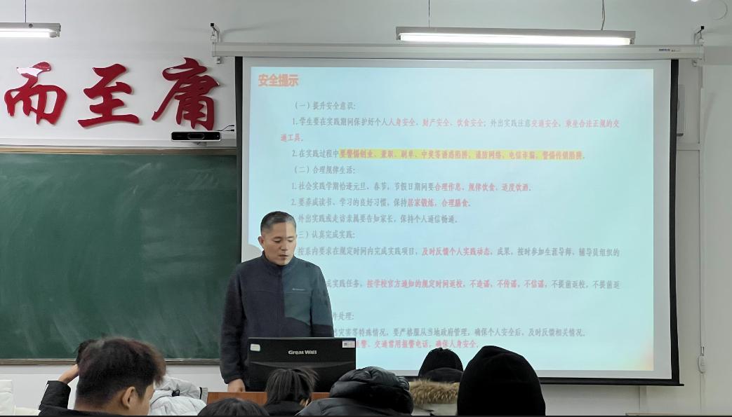 为扎实开展社会实践学期活动,提高学生融入社会能力并安全度过假期,土木(专升本二年制)251班于12月30日下午在二教2308召开社会实践学期动员暨假期安全教育班会。本次班会由于敦续老师主持,班级全体学生参加。