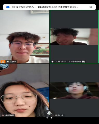 土木与管理学院工程造价251刘珂小组于1月5日通过视频会议召开社会实践学期小组交流会,目的是明确分工、细化步骤,确保实践任务高效推进。结合工程专业特色,本次社会实践聚焦工程造价与工程管理基层岗位调研,旨在推动课本理论与行业实操深度融合,为高质量完成实践任务筑牢基础。