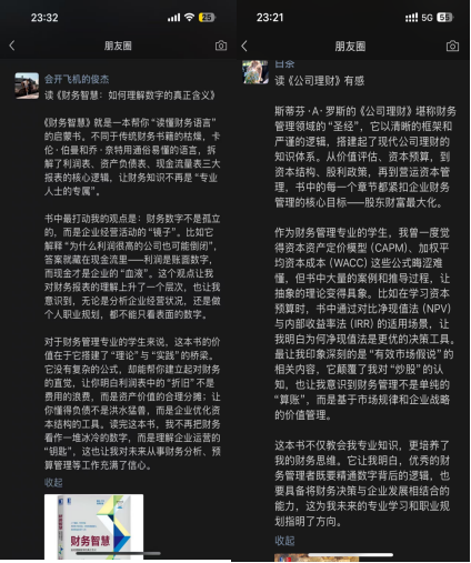 小组组长玉罕章分享了《公司理财》。该书以清晰框架和严谨逻辑构建现代公司理财知识体系,涵盖价值评估、资本预算等核心内容,紧扣“股东财富最大化”目标。其中“有效市场假说”章节令她印象深刻,不仅颠覆了对“炒股”的认知,更让大家明白财务管理是基于市场规律与企业战略的价值管理,而非单纯“算账”。