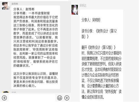 在快节奏的大学生活中,阅读是滋养心灵、提升自我的重要途径。1月1日-7日,土木与管理学院财管232班刘越小组开展“阅读提升,AI塑性”线上阅读分享活动,围绕《审计学》《会计学原理》《一本书读懂财报》《财务会计》四部专业书籍展开深入交流。