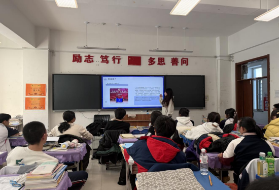 随后,她深入班级,针对学校的办学特色、王牌专业、就业优势,以及资助政策等方面进行了讲解宣传。宣讲过后,她又与学弟学妹们进行互动,与他们分享了高考备考经验与对大学生活的感悟,助力学弟、学妹明晰升学方向,坚定逐梦信念。