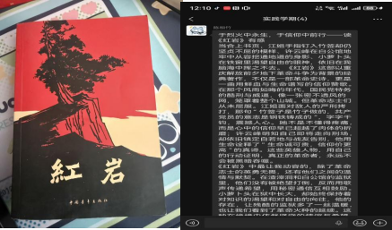 最后小组成员陈相竹分享了《红岩》,这本书使她震撼于革命先烈在狱中不屈的抗争精神。面对酷刑与利诱,江姐等英雄坚守信仰、舍生取义,用热血浇灌理想之花。
