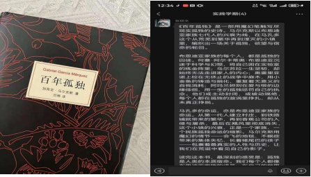 紧接着小组成员张硕文分享了《百年孤独》,他表示:“通过阅读这本书,我感受到布恩迪亚家族七代人的兴衰与孤独。”孤独是宿命,却也在提醒每个人,唯有打破封闭,才能寻得与世界的联结。