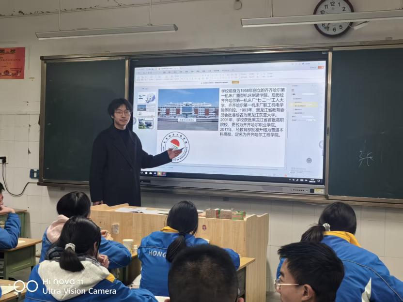 分享会上,高镯向大家介绍了齐齐哈尔工程学院亮剑精神。这种精神激励着一代又一代齐工学子直面挑战、奋勇争先,在求学与实践的道路上永不止步。随后,着重展示了学校完善的基础设施,提及校内专业的滑雪馆与标准的游泳场时,更是引得学弟学妹们连连赞叹,这些设施不仅丰富了课余生活,更为同学们的全面发展提供了有力保障。