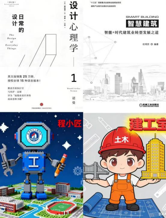 组员袁诗坤参考《设计心理学》人性化理念与《智慧建筑:智能+时代建筑业转型发展之道》智能建造逻辑,设计校园吉祥物“程小匠”,科创机器人造型,科技蓝主色调融入校徽标尺纹理,嵌校训智能芯片;专业吉祥物“建工宝”为土木工匠形象,配安全帽、BIM平板与装配式模型,凸显数字建造特色。两款吉祥物后续将通过3D建模优化视觉呈现。