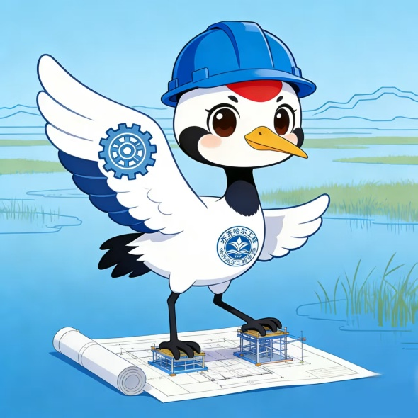 本次设计参考张宪荣《设计符号学》系统讲解设计符号的语构、语义、语用逻辑与叶志明《土木工程概论》中“结构稳定、安全第一”的专业理念,融合齐齐哈尔“鹤城”地域特色、学校“中而至庸,和而不同”校训与土木工程专业特质。“鹤工仔”以丹顶鹤为原型,搭配工程安全帽、齿轮等元素,彰显工科院校实践创新精神;“砼墩墩”将混凝土墩拟人化,融入塔吊、水准仪等专业符号,诠释土木人“建基筑梁”的专业内核。