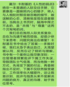陆恒运分享了戴尔-卡耐基的《人性的弱点》,他说:“《人性的弱点》绝非一本普通的人际交往手册,它更像是一面映照内心的镜子,将人与人相处时那些被忽略的细节、被误解的心态,清晰地呈现在读者眼前。”
