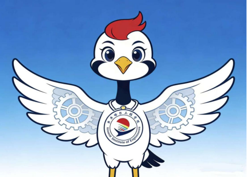 该吉祥物以齐齐哈尔地域象征丹顶鹤为主体,融合学校工程属性与亮剑精神。翅膀嵌入工程齿轮纹路,契合“工程”院校的专业内核;胸前佩戴校徽,强化学校专属标识;丹顶鹤昂首展翼的姿态兼具亲和力与视觉辨识度。