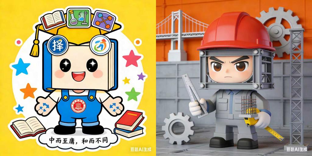 为响应“我的符号我做主”实践主题,土木与管理学院土木232班陈海瑞结合人文社科阅读感悟与土木工程专业特色,通过阅读书籍《你的选择就是你的世界》,于1月9日完成了校园及土木工程专业吉祥物的创意设计,以自主选择为内核,用AI塑性为载体,传递校园精神与专业追求。