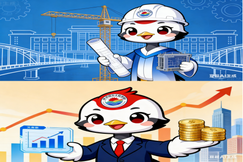 齐齐哈尔工程学院吉祥物以鹤城标志性的丹顶鹤为原型,既彰显地域文化特色,又寄托学子昂扬向上的精神风貌;吉祥物采用拟人化Q版形象,头戴印有校徽的安全帽,身着蓝白渐变工装,左手持工程蓝图、右手握BIM模型,生动塑造出严谨又充满活力的“未来工程师”模样;背景以工业蓝为主色调,融入塔吊、教学楼、桥梁线稿轮廓与齿轮元素,象征着学子的创新活力与实践热情,整体设计将工程符号与校园文化具象融合,成为传递校园精神与工科特色的鲜活载体。