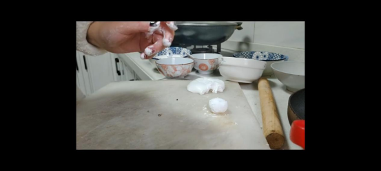 制作前,洪瑾婷提前查阅了汤圆的传统制作工艺资料,了解到水磨糯米粉的特性和馅料调配的技巧。她特意准备了水磨糯米粉、黑芝麻、猪油、白砂糖等食材,从基础的和面步骤开始实践。“看似简单的揉面,其实藏着不少门道,水的温度、和面的力度都会影响糯米团的韧性,第一次揉的面团要么太干开裂,要么太黏手,反复调整后才找到合适的状态。”她分享道。