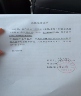 此外,小组成员季金凤、王昱尧主动投身社会志愿服务,以热忱态度践行志愿精神,在奉献中传递温暖,为假期实践增添了厚重底色。