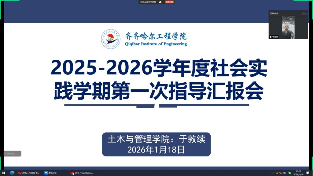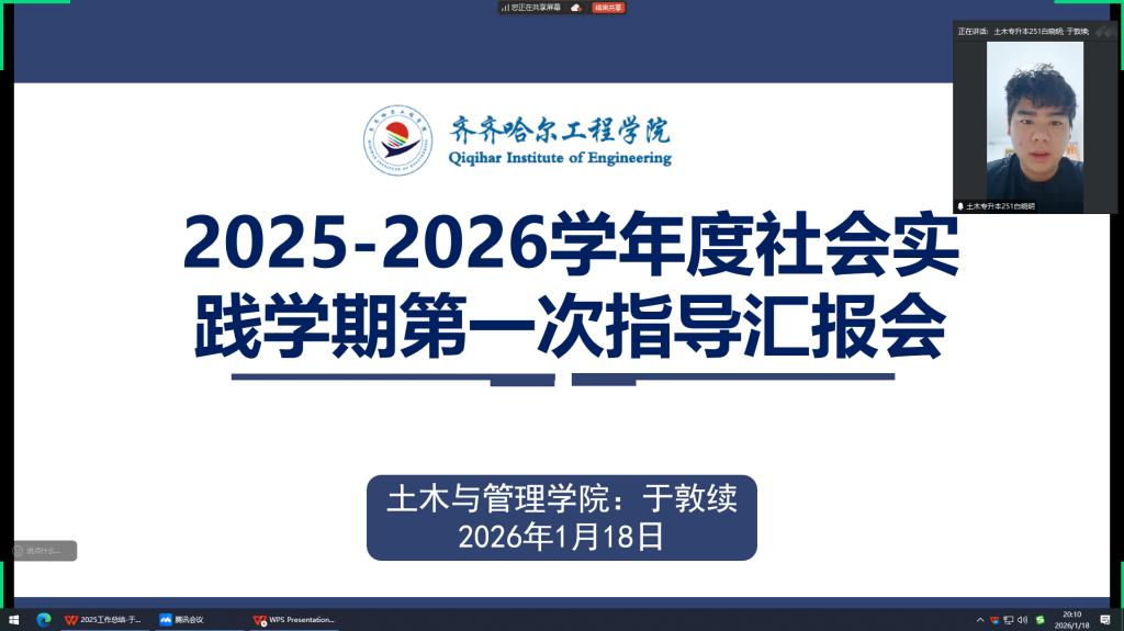 1月18日晚,土木与管理学院辅导员于敦续召开社会实践学期第一次指导汇报会,会议由于敦续老师主持,全体小组长参加会议。