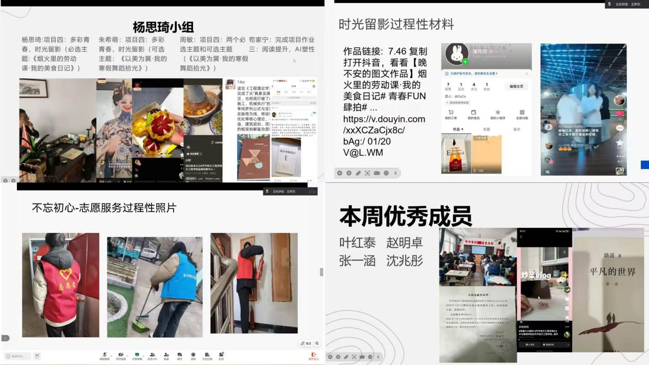会议伊始,各团队队长依次汇报了目前社会实践项目的推进情况。汇报内容涵盖已完成的核心任务、取得的阶段性成果等。在汇报过程中,各队长也坦诚剖析了实践开展过程中出现的问题,反映出实践进度把控不均、照片拍摄不规范等问题。