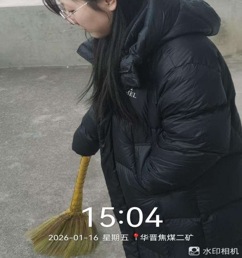土木与管理学院造价251班张欣桐于2026年1月16日在华晋焦煤二矿进行志愿服务,以实际行动传递奉献精神。