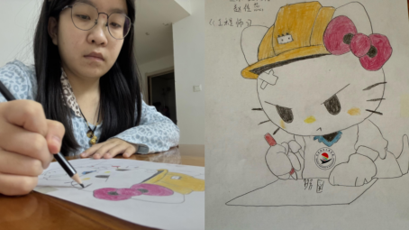 在这一创作构思中,赵佳蕊率先运用形象反差,撕开刻板印象的缺口。她挑选了大众认知中“柔美可爱”的Hello Kitty,却为其戴上安全帽,并将它置于满是工程元素的场景之中。这种“软萌符号”与“硬核职业”的碰撞,精准地击中了“土木工程是男生专属”的固有偏见,使得“性别不该框定职业选择”的观点,从形象冲突中自然地显现出来。