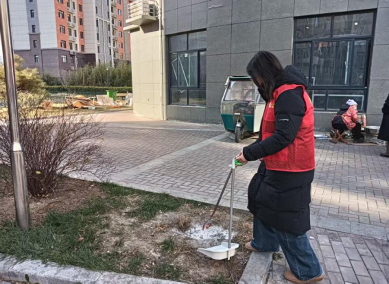 活动中,她与其他志愿者分工协作,重点开展社区主干道垃圾清理、绿化带杂物捡拾、公共健身设施擦拭及楼道乱堆物品规整等工作。尽管当日天气寒冷,但志愿者们相互配合、高效推进,经过数小时忙碌,社区公共环境面貌焕然一新。