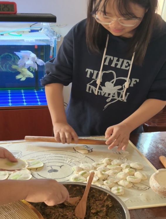 邵健宁从揉面、擀皮到包馅、煮制,将制作饺子的每一个步骤细致记录。镜头里,和面时的反复揉搓、擀皮时的慢慢摸索、包馅时的认真雕琢,再到沸水入锅后等待饺子浮起的期待,每一个充满生活气息的瞬间都被用心捕捉。她将这些片段精心剪辑成短视频,让平凡的劳动过程成为青春实践里的独特风景。