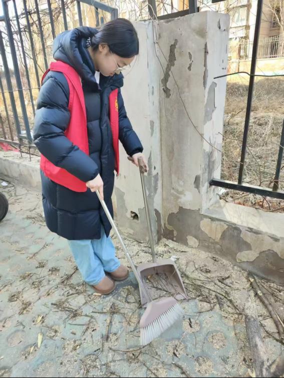 活动期间,王兆熙提前准备好清洁工具,对社区公共区域开展全方位、无死角的环境清扫工作。她细致清理散落垃圾、枯枝落叶与各类杂物,同时将社区的车辆摆放整齐,不放过任何细节问题。经过数小时的忙碌,社区公共环境面貌焕然一新,整体整洁度与美观度得到显著提升。