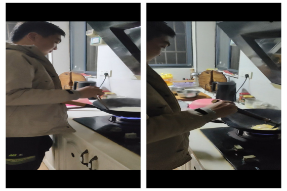 为做出地道家常味,李弘毅全程亲力亲为,提前梳理烹饪流程,细心选购高筋挂面、土鸡蛋等食材及各类调味品。烹饪中,他从煎至金黄蓬松的鸡蛋、爆香葱花,到把控火候煮面、搭配青菜调味,逐步从手忙脚乱变得熟练流畅。即便初期遭遇煎煳鸡蛋、煮面过软的问题,他也反复尝试改进,最终做出一碗热乎可口的鸡蛋面。